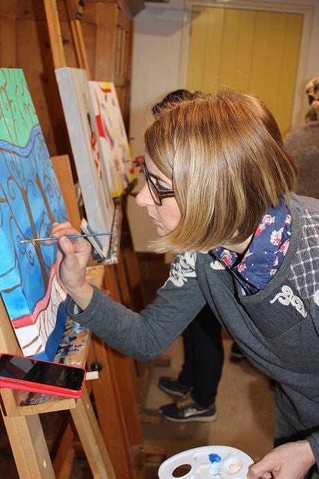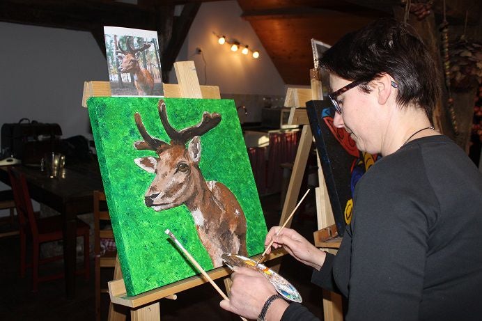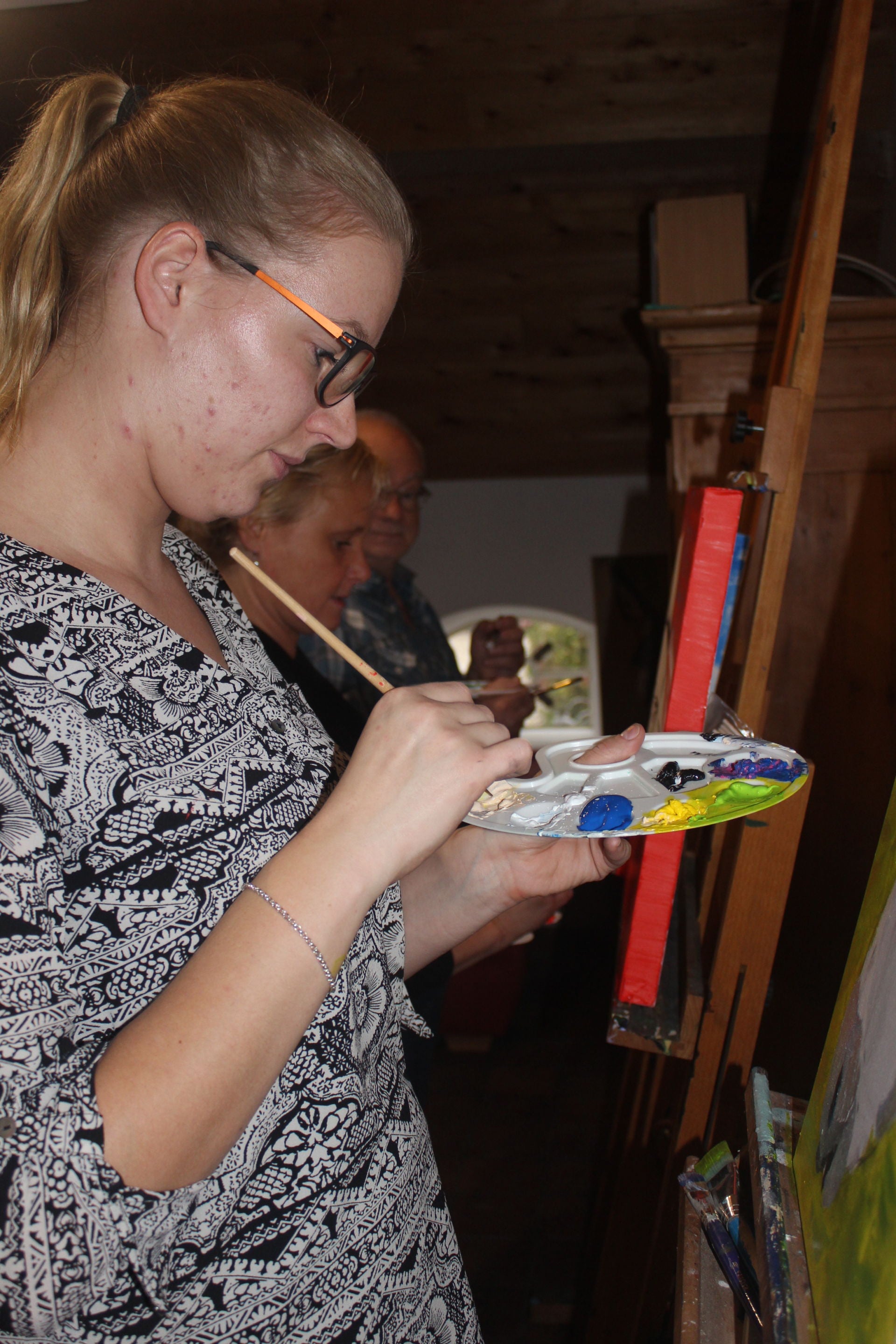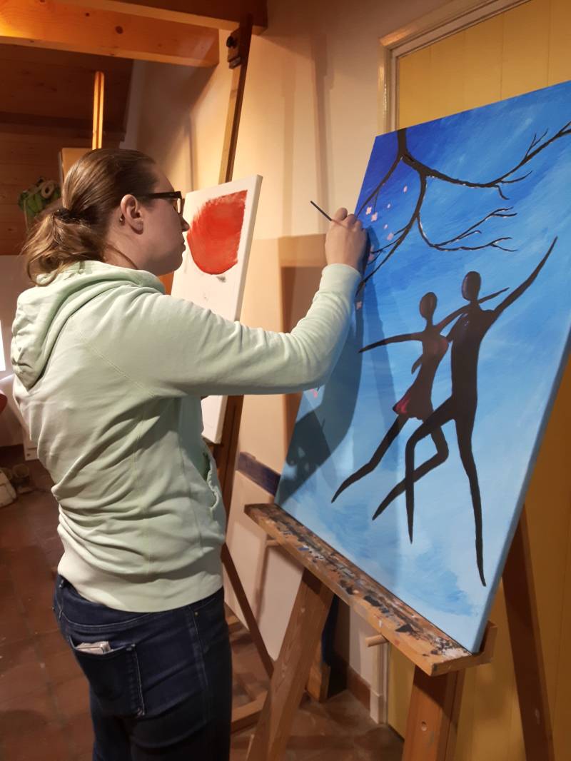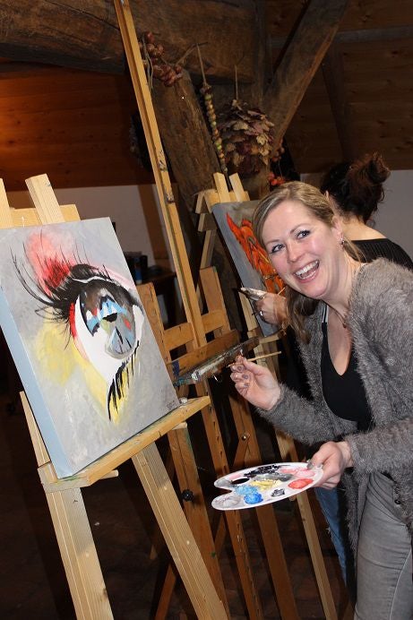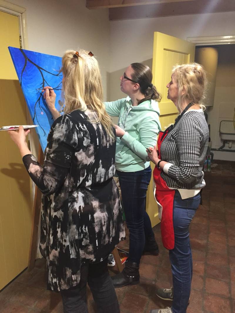Rond 12:30 uur wordt een lunch aangeboden. Na de lunch maken we het schilderij af.